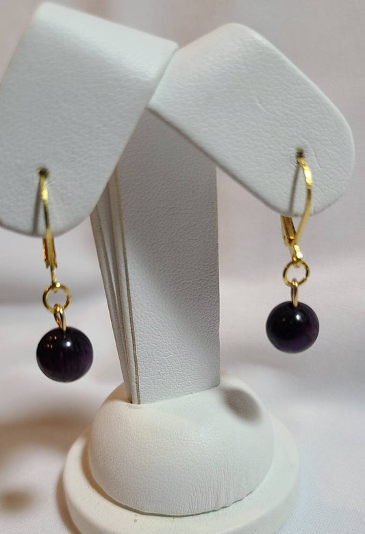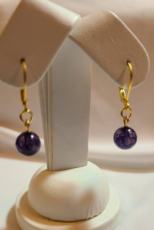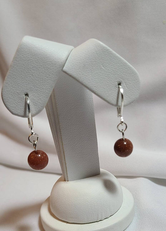 Dangle Dark Red Quartz Stone with Gold tone beads